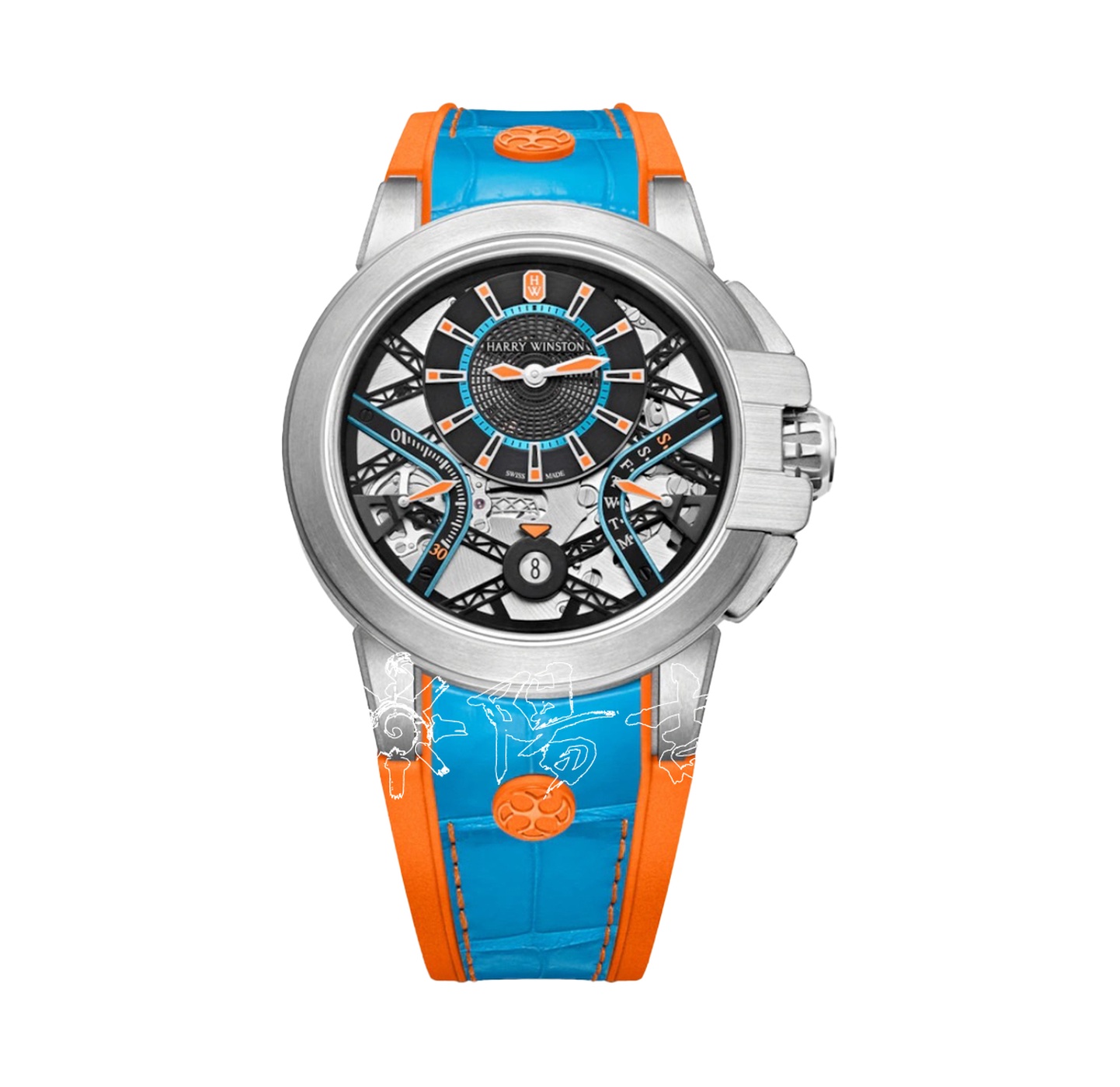 ターコイズ アリゲーターレザー、オレンジ ラバーベース | オープンワーク